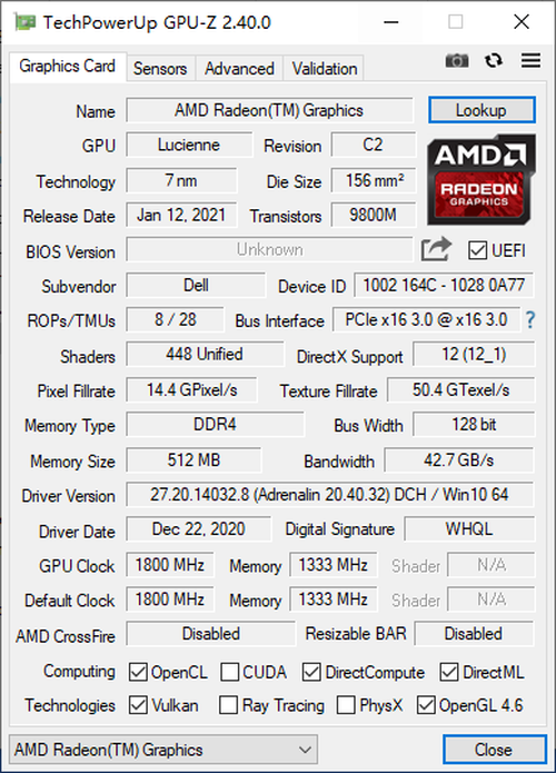 锐龙5 5500U移动处理器内建有AMD Radeon Graphics显卡,RDNA架构设计,具备448个流处理器。需要说明的是,AMD这几年处理器内建显卡的架构没什么变化,一直用的是RDNA架构。