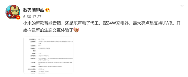 小米新款智能音箱曝光,支持UWB