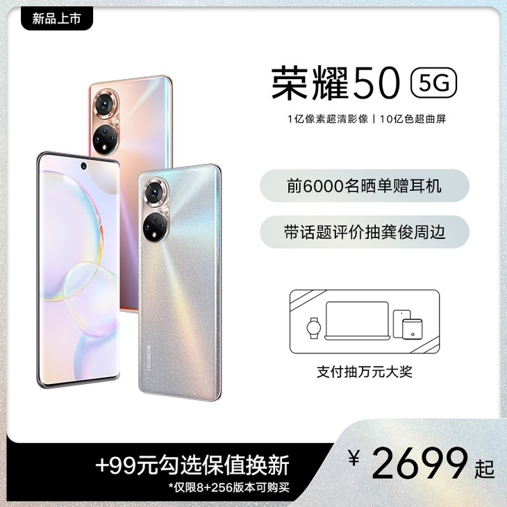 荣耀50 8GB+128GB版本售价2699元,8GB+256GB 版本售价2999元。