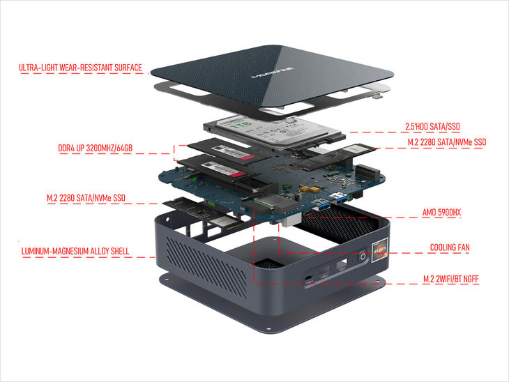 我国香港公司Multifine最近发布的S500 + Mini PC采用了锐龙9 5900HX这款AMD现役的旗舰级移动处理器。这也标志着AMD新一代高性能Mini PC的到来。