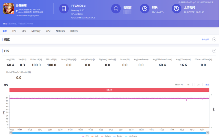 根据实际测试结果,《王者荣耀》在特效全开的画质设置下,软件记录到的游戏平均帧数为60.4帧,游戏全程帧率波动都很小,画面稳定流畅,在多人团战等复杂场景的流畅度也有保证。值得一提的是,手机背面的温度控制得非常好,对手感影响很小。