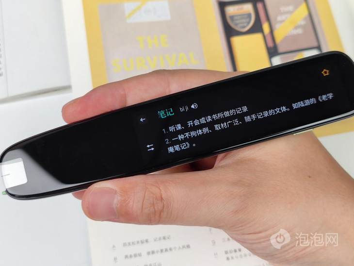 虽然尺寸小巧,但是讯飞翻译笔S11却搭载了一块3.7英寸的高清显示屏,可以最多同时显示5行文字,做到释义结果一屏全显。这块屏幕也通过了TUV护眼认证,在长时间使用时,可以降低屏幕对眼睛造成的伤害。