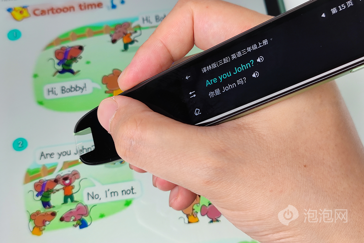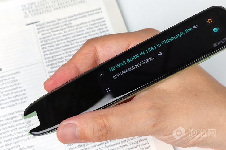 按下语音键,讯飞翻译笔S11可以实现英文的实时翻译功能,准确度以及翻译速度表现都很出色。