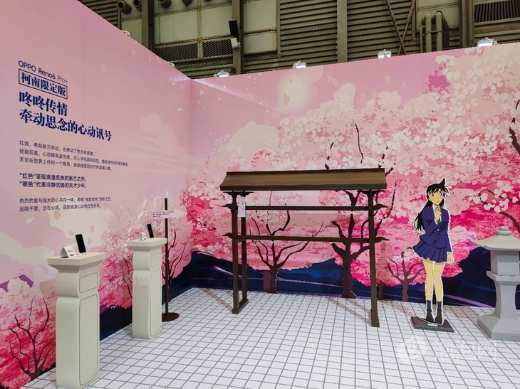 在2021 ChinaJoy展会上,OPPO把名侦探柯南元素融入到了OPPO展区,还在现场搭建了一个“红色羁绊心动事务所”,你可以体验“红色羁绊心动事务所”密室揭秘、名场面打卡等环节,给到场的参观者营造出满满的氛围感。