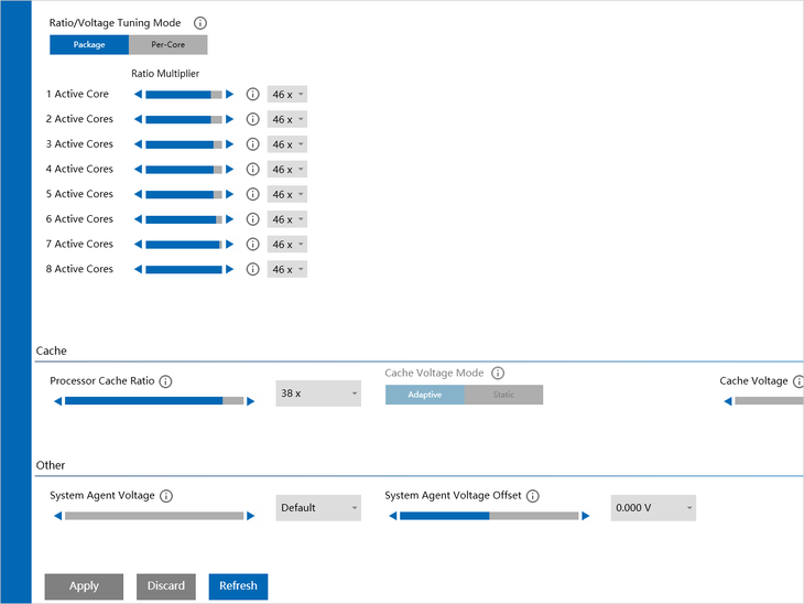 利用英特尔XTU这款软件,玩家们便可以进行动态超频操作。当然,动态超频的难度是要远远大于传统超频方法的,玩家们在设置好超频频率之后,务必要进行一下稳定性测试。