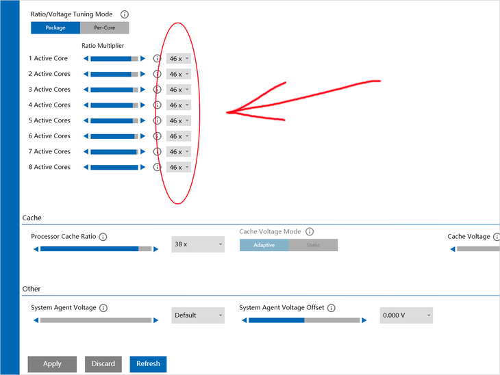 动态超频呢,就是在处理器默认的动态频率基础上,继续进行超频,而你的超频结果依旧是一套动态频率。动态超频可谓牵一发而动全身,这也是其难度所在,需要超频玩家在功耗、散热、多核心和少量核心这么多的参数下去寻求理想中的平衡点!