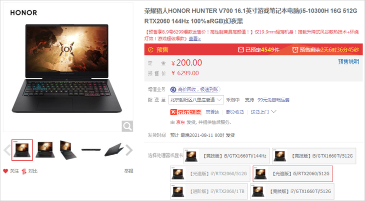 至于硬件配置方面,荣耀猎人游戏本V700也几乎没有短板,最高搭载英特尔酷睿十代i5 10300H处理器,配合上满血RTX2060光追独显,既可以满足学生3D制作、视频剪辑、直播等各种专业软件的流畅运行,又能兼顾娱乐,运行当前主流游戏大作无压力。其它配置上则有16GB DDR4双通道高速内存、512GB PCIE3.0 x 4 NVMe固态硬盘,支持WiFi6和蓝牙5.1。