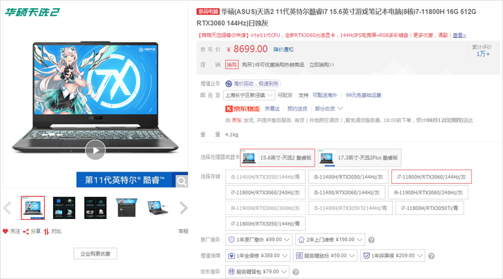 目前在华硕京东自营官方旗舰店,酷睿i7-11800H搭配RTX3060笔记本电脑GPU的机型售价8699元,酷睿i5-11400H搭配RTX3050笔记本电脑GPU的机型优惠之后更是低至5999元。