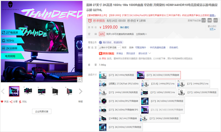 接下来,特别推荐四款热销的2K游戏显示器,包括爱攻PD27、ROG XG27AQ、明基EX2780Q、雷神Q27HL。它们的价位从1000多元到5000多元不等,玩家们按需选购就好。