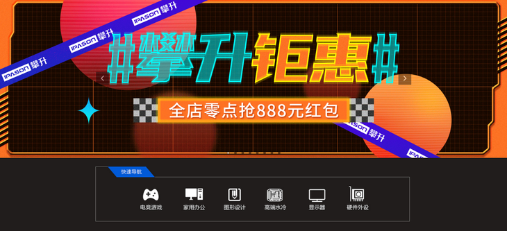 攀升DIY电脑旗舰店特别开启京东热8购物节钜惠活动,超多热销机型参与其中,更有零点抢888元红包以及满额立减等诱人福利,给你看得见的购机实惠,近期有意购置新电脑的用户们不妨上网瞧一瞧。