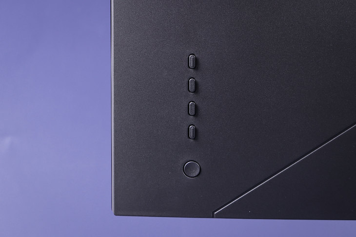 这款电竞显示器的控制按键集中在了机身背面左侧。用户坐在显示器前面伸出右手便可轻松地对这组按键进行操控。
