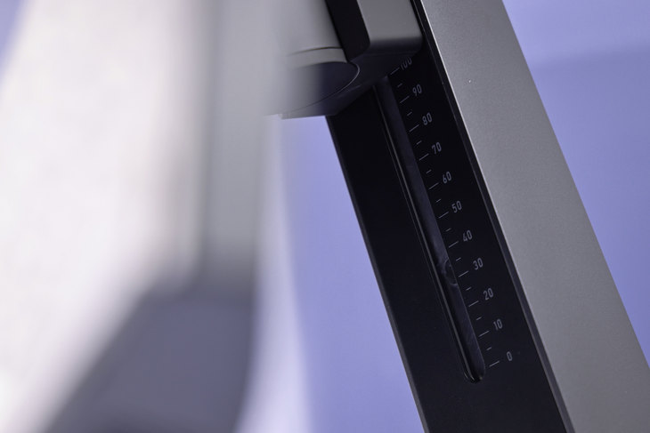 升降、旋转支架设计上面还标注了屏幕升降的高度刻度,方便玩家们精准地调整屏幕的高度。