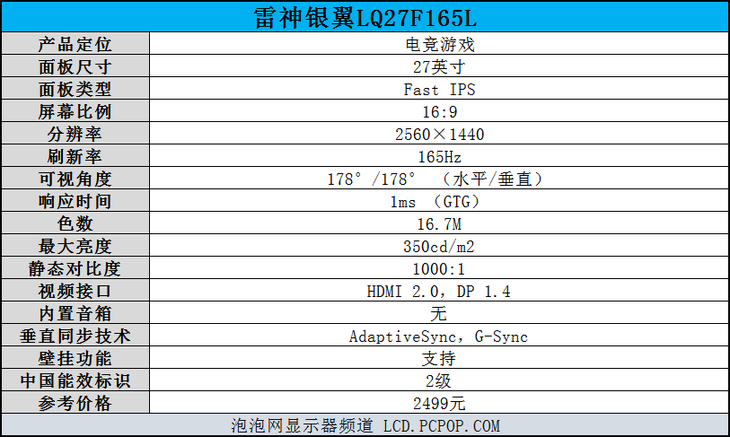 G-Sync电竞大屏 雷神银翼LQ27F165L评测