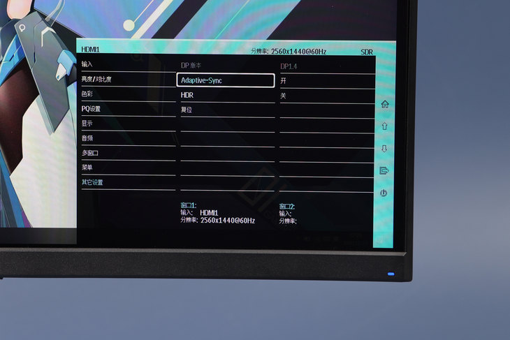 这款电竞显示器的主控制菜单,显示位置位于屏幕的右下角。