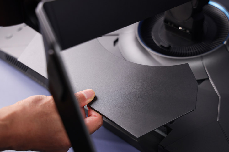 线缆接口区域加装了一个磁吸式的挡板,提升了显示器背面的整齐性、美观性。