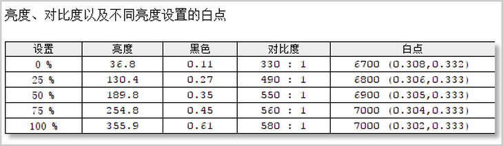 (测试项目介绍)色温/对比度一致性测试,是让显示器在屏幕不同亮度(0%、25%、50%、75%、100%五个亮度等级)下测试白点色温/对比度的稳定性,其最理想的结果是在各亮度下对比度和色温值都不会发生变化。色温体现的是屏幕的色彩是偏冷还是偏暖,通常我们会让电子产品屏幕显示纯白色,在D65标准以及环境亮度的情况下,色温为6500K正常,低于6500K则偏暖,而高于6500K则偏冷。