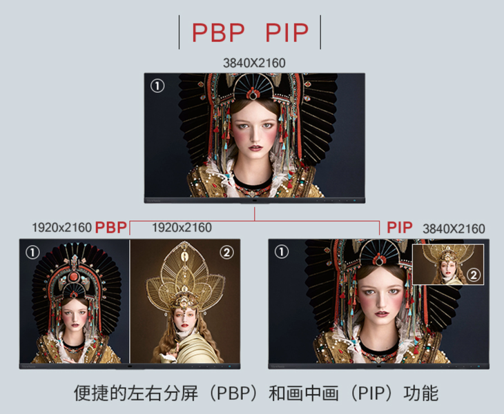 优派VP3268a-4K显示器支持PBP和PIP的功能,实现一屏多用,内置DP、 Type-C以及HDMI、RJ 45网口等多种主流接口。其中Type-C接口还支持反向供电90W。显示器符合人体工学设计的双向旋转升降底座和内置的重力感应,日常使用更加便捷。