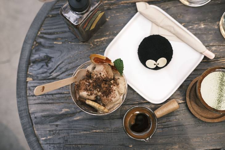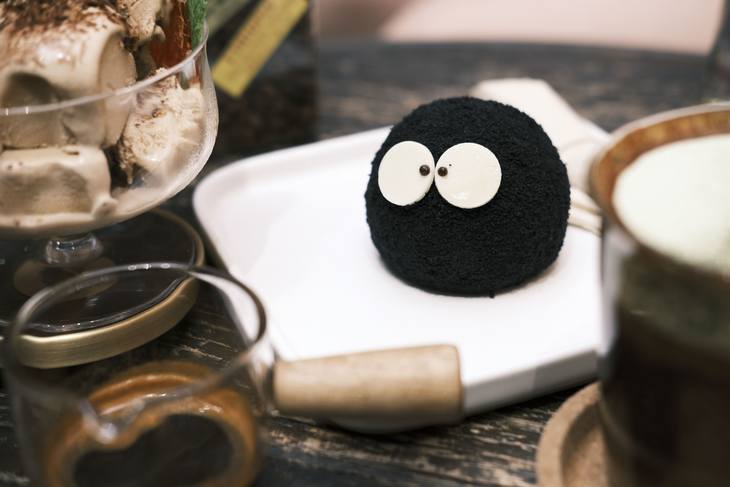 最后,也是最有特色的,就是他们家的“小煤球”啦,没错,它的造型绝对有一种亲切感。竹炭蛋糕是他的外皮,而内在就是我最喜欢的抹茶奶油夹心,虽然可能蛋糕可能没有之前那么惊艳的口感,不过完全是胜在造型上面。“小煤球”憨憨的盯着你,你还真不知道从哪里下口呢。
