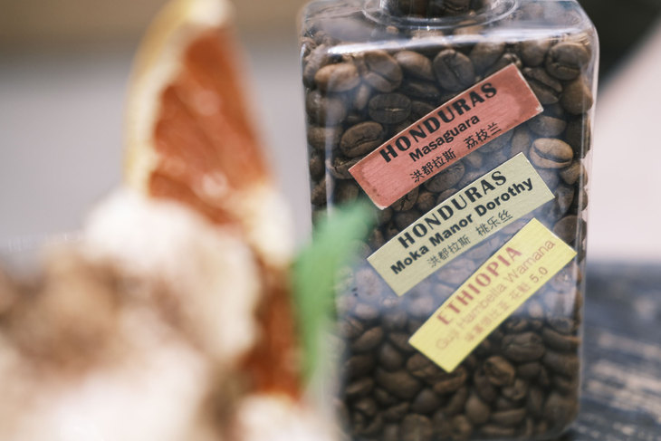 进入TIAN ROAST咖啡的香味扑面而来,然后之后映入眼帘的就是各种陈列起来的咖啡豆,不仅咖啡闻起来香,这里的环境也让人可以让人不由自主的去停下自己的脚步,去品尝一下他们的特色饮品。