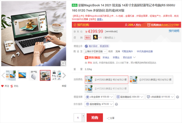 荣耀MagicBook 14 2021锐龙版轻薄本目前在荣耀京东自营旗舰店正开启特惠活动,4399元即可拥有,追求高性价比的学子们值得关注下。AMD六核处理器配上素质不错的显示屏,上学用很合适。