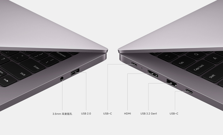 Redmibook Pro 14锐龙版内置丰富的接口,包括2个USB- C、1个USB 3.2 Gen1、1个USB 2.0、HDMI接口以及3.5mm耳麦插口。