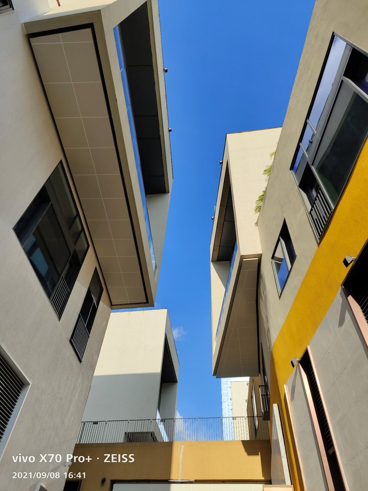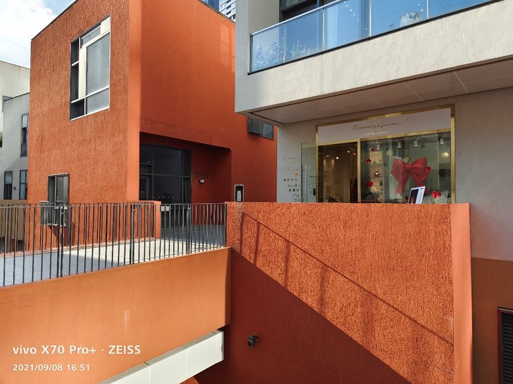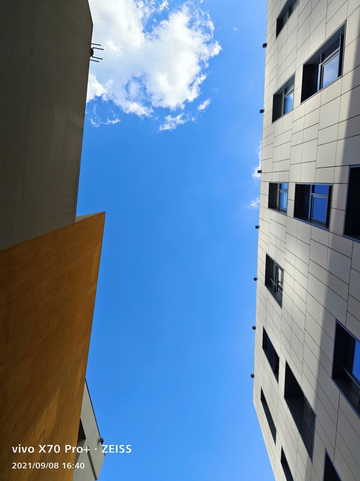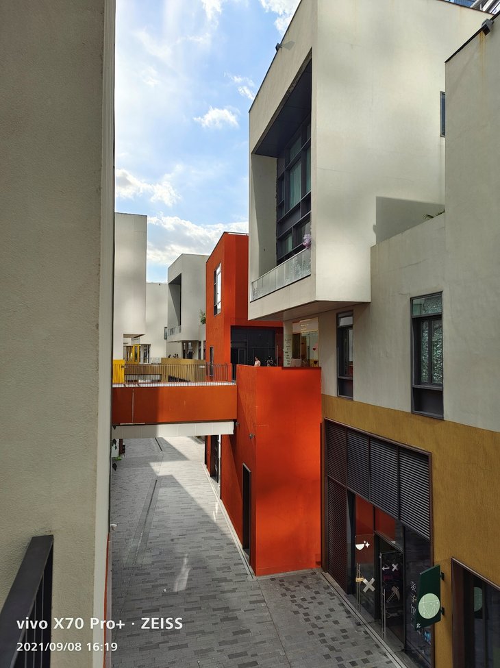 vivo X70 Pro+主摄级的超广角镜头成像质量同样不用担心,能实现114度广角拍摄,色彩方面与主摄接近,放大看细节也经得住考验。超广角拍摄到的视野明显比主摄开阔许多,边缘畸变控制得很好,边缘画质也没有特别明显的降低,超广角的整体成像效果让人满意。