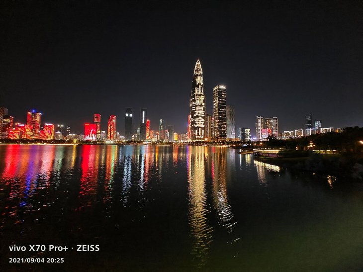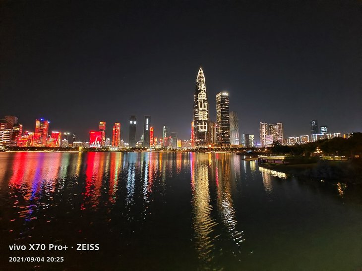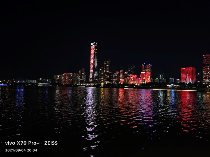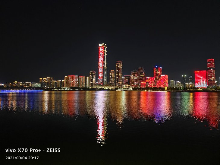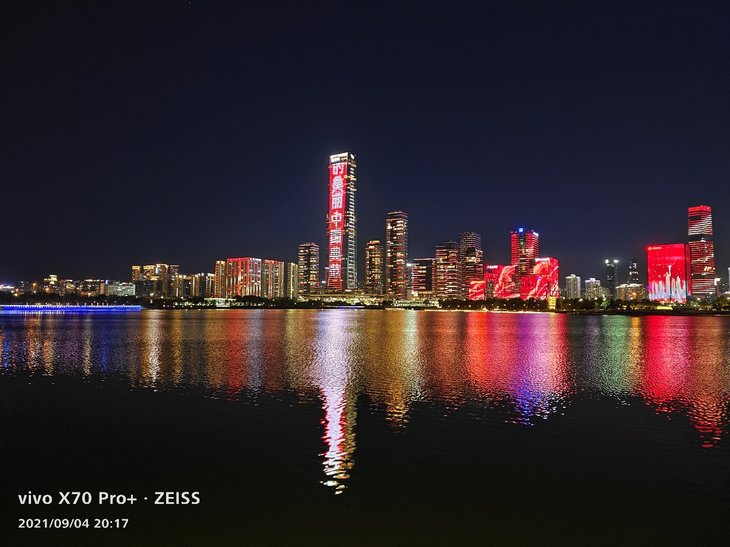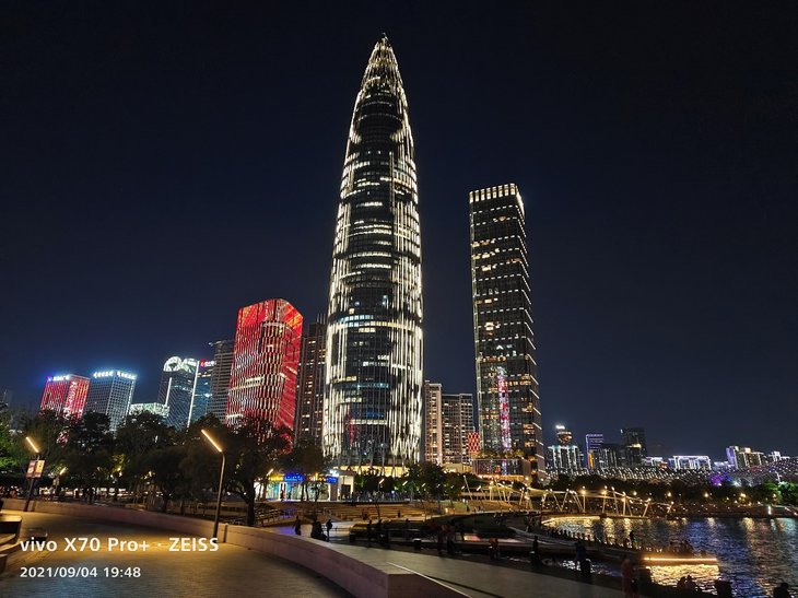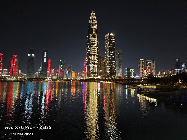 在夜景拍摄上,主摄样张色彩还原同样很准确,大楼上复杂的彩色灯光、容易偏白的黄色灯光等都能准确还原,天空没有明显杂色,在保证还原度的同时,画面观感出色。