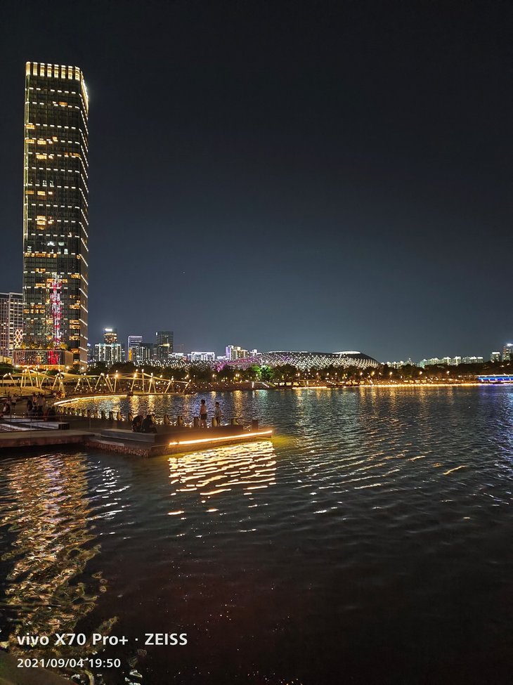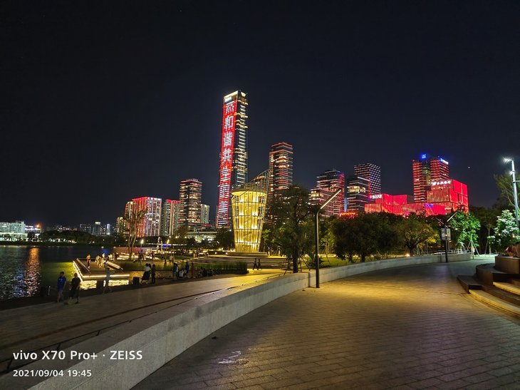 得益于GN1大底主摄,vivo X70 Pro+的夜拍效果同样有出色表现。默认模式下,应该已经融入了部分夜景算法,路灯、灯带等高光部分压制到位,呈现丰富细节,样张画面纯净通透。大部分场景下,拍摄到的夜景样张整体画面亮度会比实际场景更亮一些,有助于提升暗部细节表现。