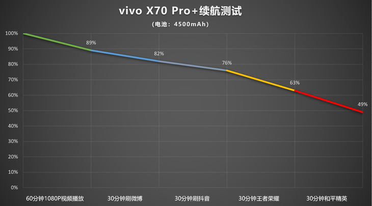 续航方面,手机设置为120Hz+2K分辨率模式,亮度为50%,经过连续3小时续航测试,最终剩余电量还有49%。在2K+120Hz全开的设置下,这样的续航表现也可以轻松接受,具体测试结果如上图。