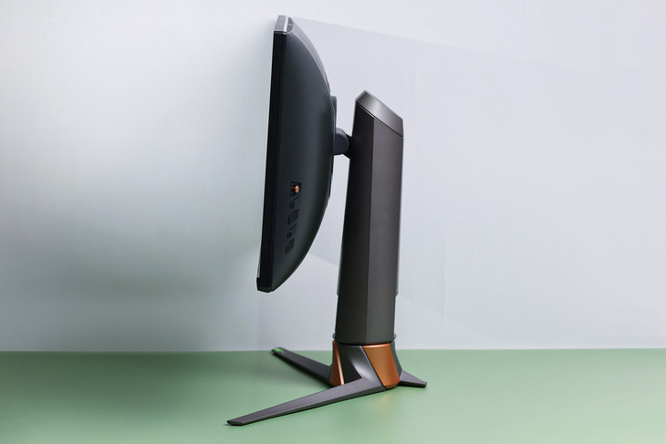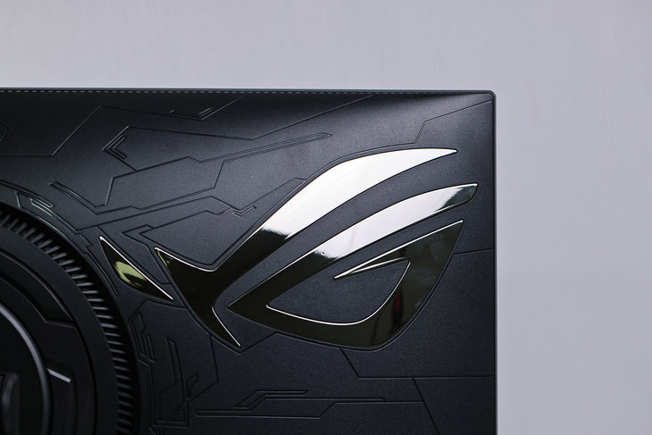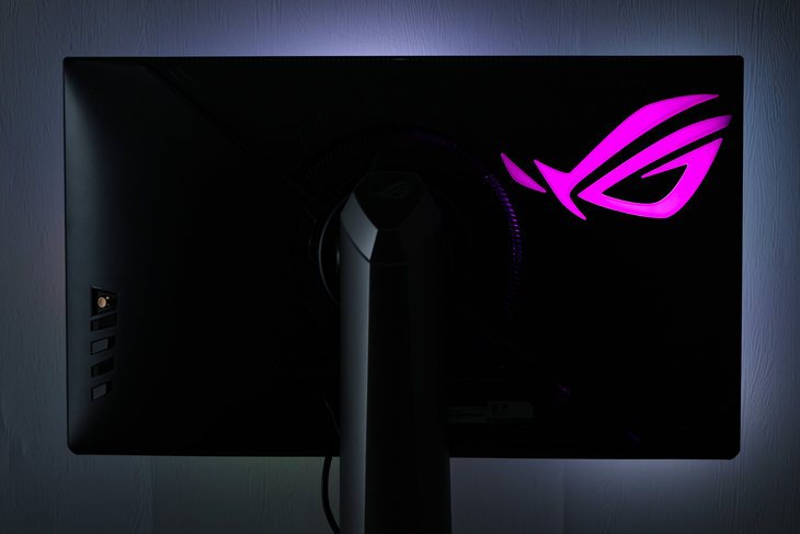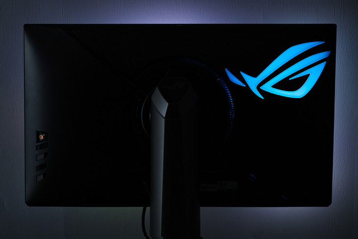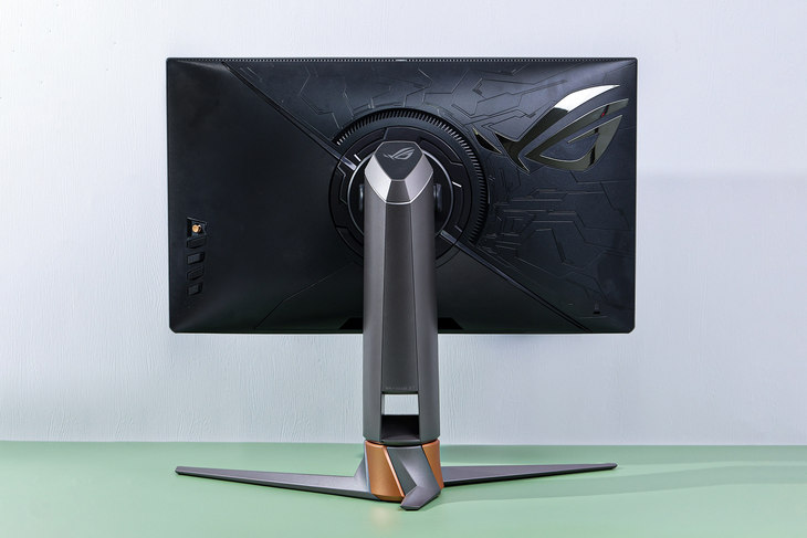 显示器背面还了一个大大的ROG的“败家之眼”LOGO,内建有RGB灯效,在黑夜里看上去信仰十足。