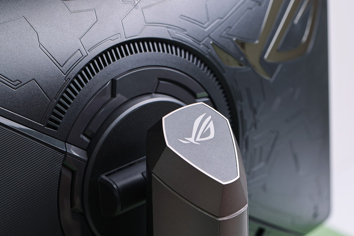 显示器支架顶端同样设计有ROG的“败家之眼”LOGO。