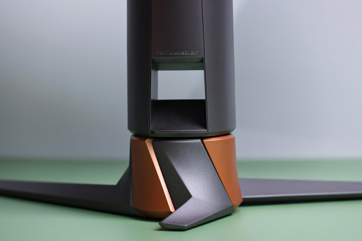 显示器支架下部设计了理线孔。电源线、信号线、以及耳机线等线缆均可固定到这里面,以便营造桌面环境的整洁、美观。