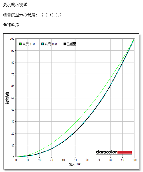 测试小结:这款显示器实际的伽马曲线和理想的状况几乎是一致的,表现很好。