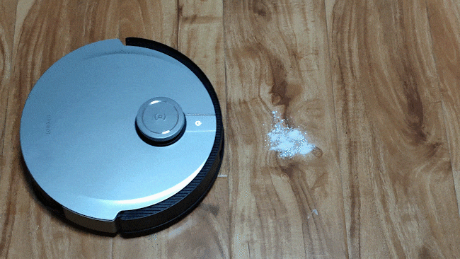 我们又放了一些面粉在地面上,面粉不但轻,而且属于粉尘类,清理起来更加困难。不过地宝X1 OMNI依然能够一次将这些面粉全部清理干净。