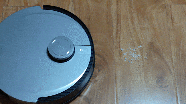 最后我们又用食物碎屑进行了测试,碎屑大小不一的尺寸也比较考验扫地机的边刷对垃圾的聚拢功能,如果边刷用力过大,可能起不到聚拢的效果,甚至会把碎屑全部打散。和前两次的测试效果一样,地宝X1 OMNI一次就将所有的食物碎屑全部清理干净。