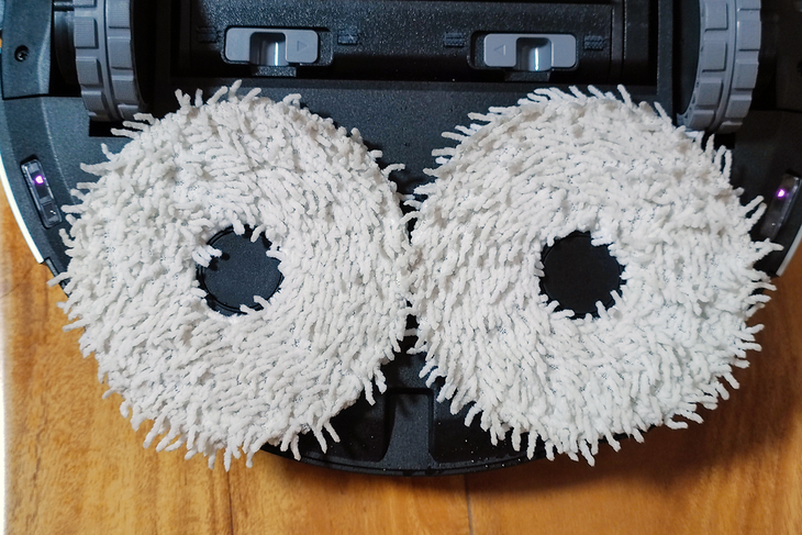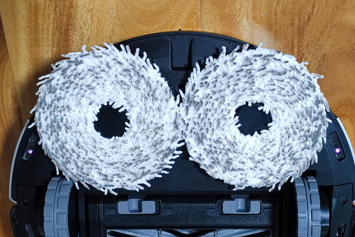 地宝X1 OMNI配备了OZMO Turbo 2.0旋转加压擦地系统,配备了两个拖布支架,两块拖布在旋转的同时向下加压,从而实现与人工清理相同的效果。