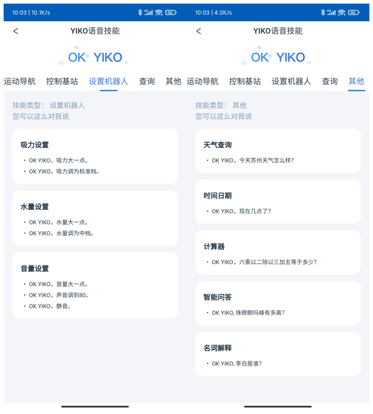 地宝X1 OMNI通过“YIKOAI语音助手”不但实现启动清扫、集尘等操作,还可以实现与目前主流智能音箱的对话操作,可以通过语音的方式询问地宝X1 OMNI时间、天气、进行互动聊天等操作,非常的智能。