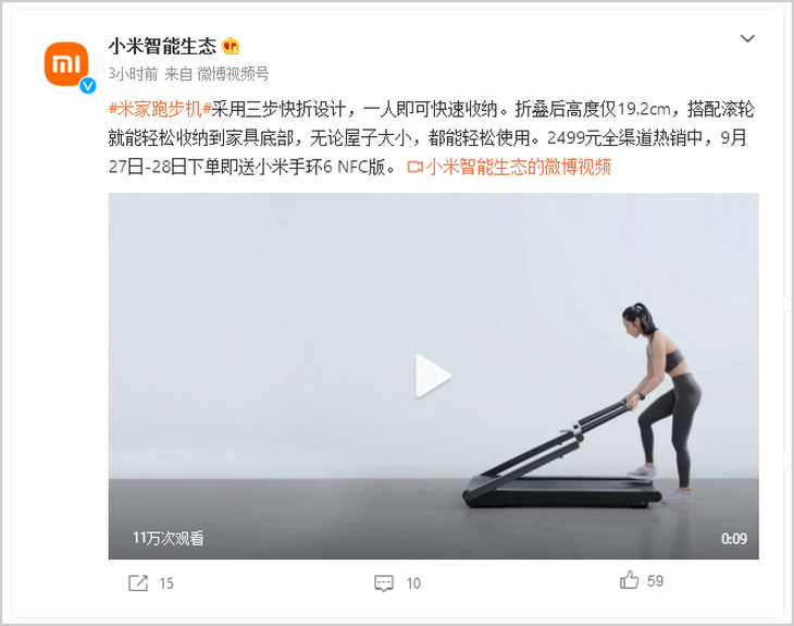 米家跑步机国庆前促销:限时送小米手环6 NFC版