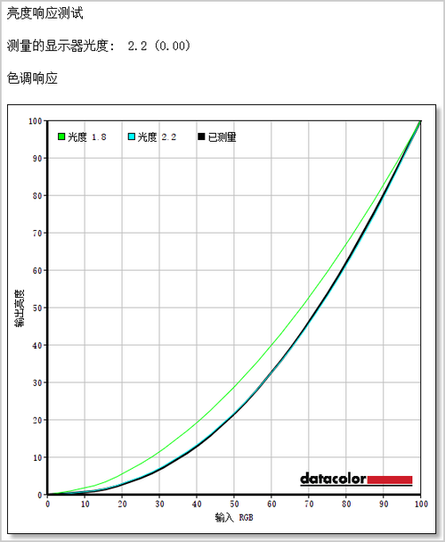测试小结:这款显示器实际的伽马曲线和理想的状况相比非常一致,表现很出色。