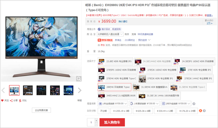 拥有4K好画质!明基EW2880U影音显示器开售