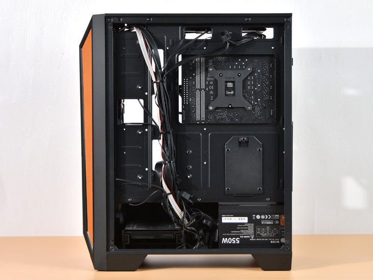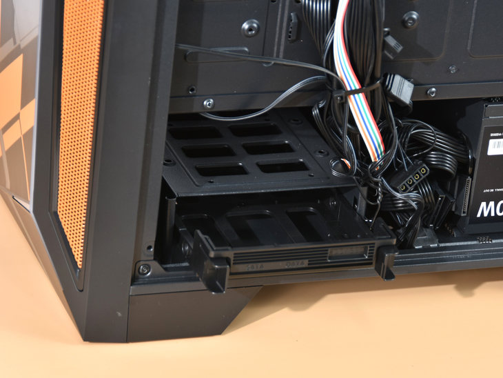 这款游戏主机采用了分仓设计。电源仓和硬盘仓均是独立的。并且采用了背板走线设计,能够有效提高机箱内部的美观程度与通风散热性能。