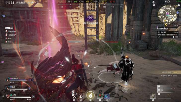 2560×1440分辨率,极高画质下,DLSS设置为超级性能。战斗时的游戏帧数为94帧左右。