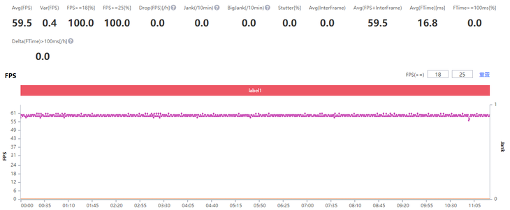 我们也测试了《和平精英》,在流畅画质下,Redmi Note 11 Pro+可以以60帧的帧率运行,在游戏过程中画面流畅稳定,平均帧率可以达到59.5FPS。