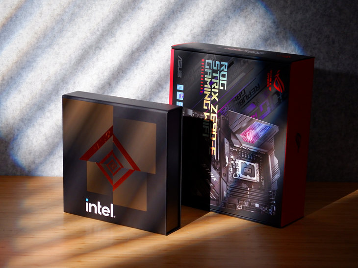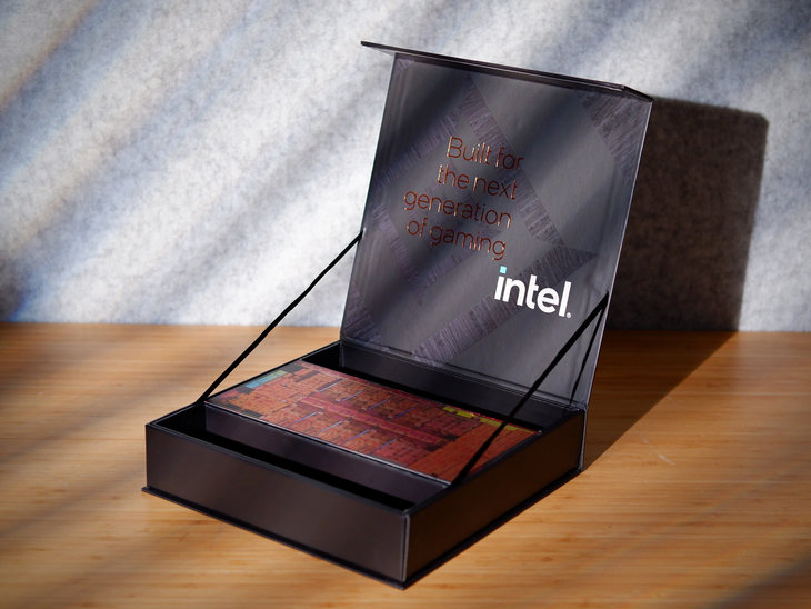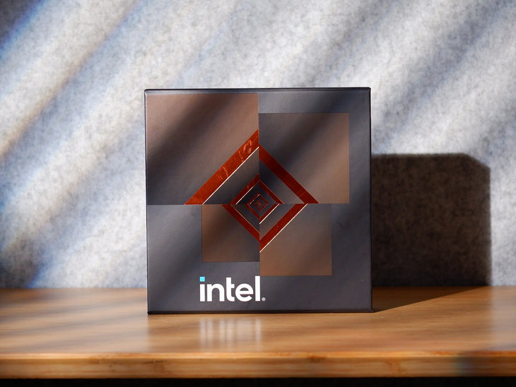 此次CPU首发评测,笔者收到的是英特尔定制款CPU套盒。包装盒外面标注有“intel”的字样。