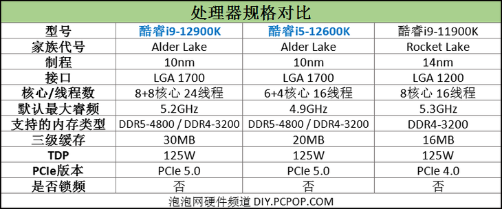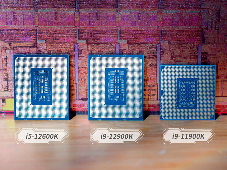 笔者将上一代旗舰酷睿i9-11900K与酷睿i9-12900K、酷睿i5-12600K放在了一起,以便大家直观地了解第12代台式机处理器的外观变化。