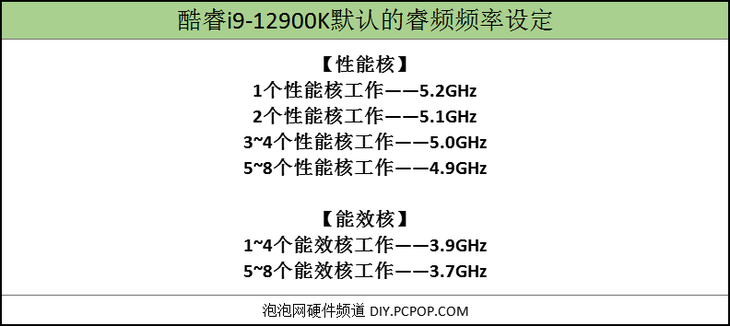 以12代旗舰型号酷睿i9-12900K为例,这样的睿频频率设定,本身就是一套动态频率。