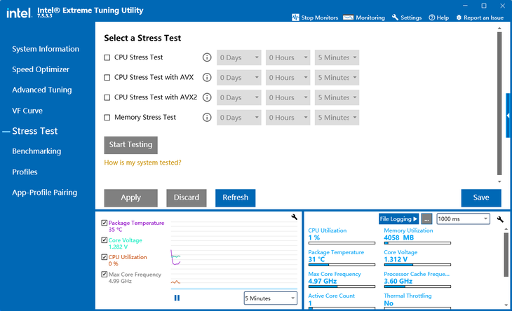 超频设置完成后,大家可以点击进入“Stress Test”界面,进行压力测试,以便验证CPU超频之后的稳定性。这个很关键!