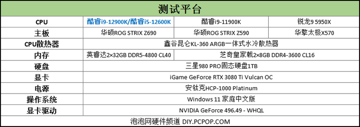 为了对比酷睿i9-12900K和酷睿i5-12600K这两款英特尔第12代台式机处理器的性能,此次首发评测还加入了酷睿i9-11900K和AMD锐龙9 5950X的成绩。