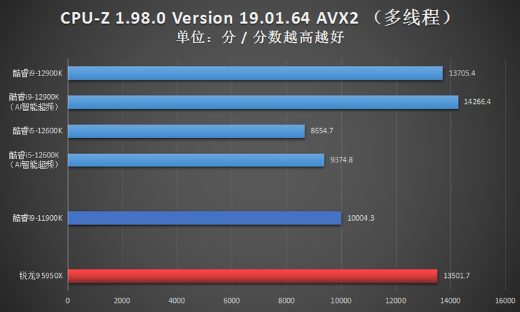 对比AMD那边竞品的话,12代旗舰酷睿i9-12900K单核性能碾压AMD,多核性能跟AMD战的有来有回。