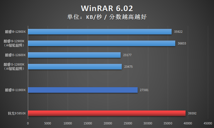 对比AMD那边竞品的话,12代旗舰酷睿i9-12900K这次直接碾压了锐龙9 5950X,毫不留情!